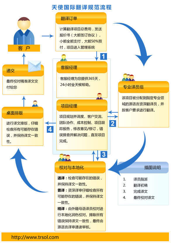 翻譯流程是一項及其耗時的過程。客戶在提供原始文檔的時候應盡量保持最終文檔的正确性和清晰度,确保委托的文檔數據不會出現亂碼或是編輯鎖定。這也是獲得高翻譯服務質量的前提,翻譯流程包括: